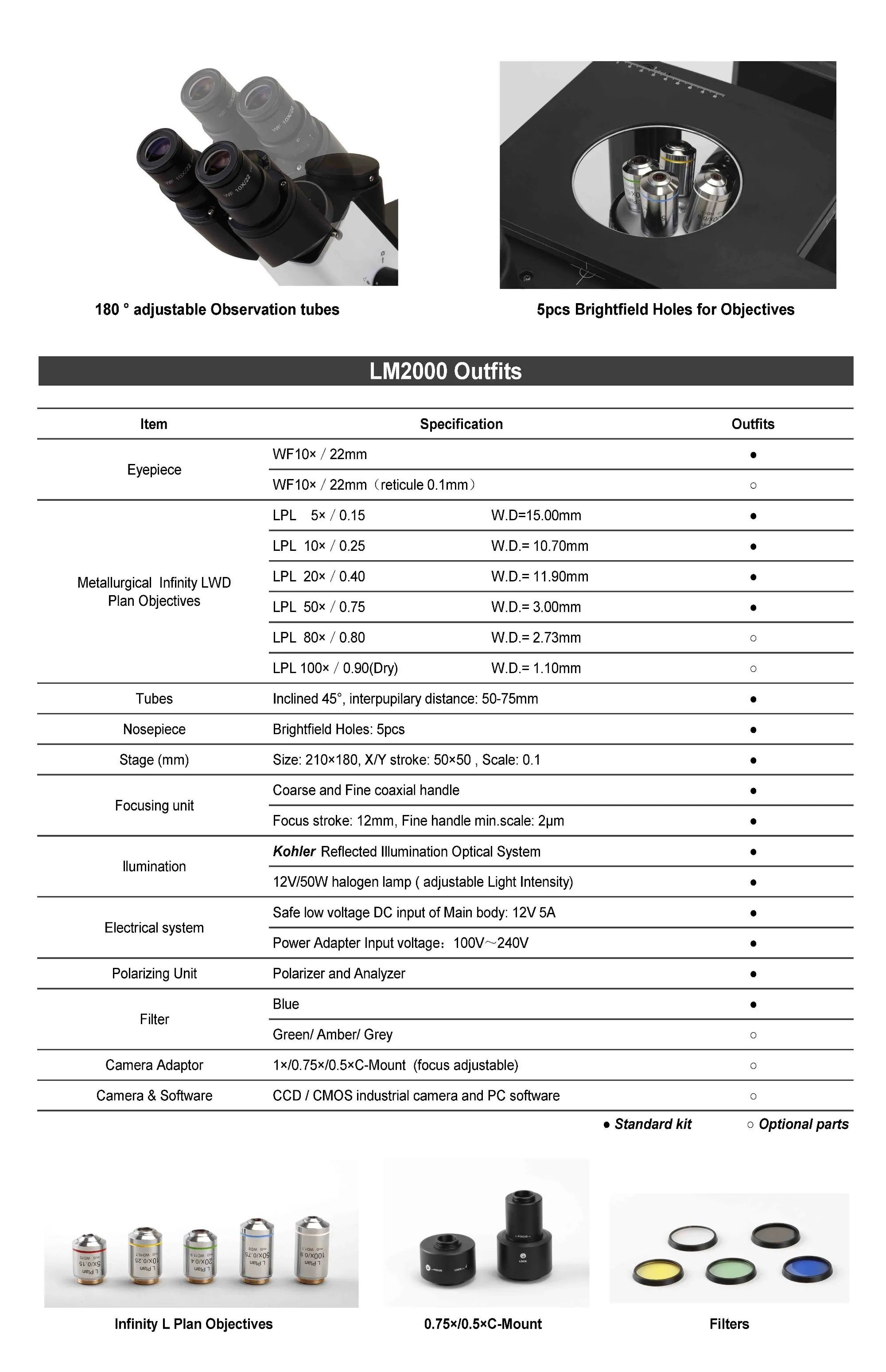 Infinity-corrected optical system. 50X ~ 1000X.