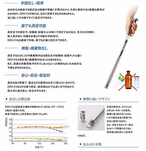 You are here: HomeProductsCooking oil testerATA0115-JAPAN DOM-244V2 FRYING/ COOKING OIL MONITOR (TEMP/TOTAL POLAR MOLECULES TPM/ACID VALUE)-From Japan