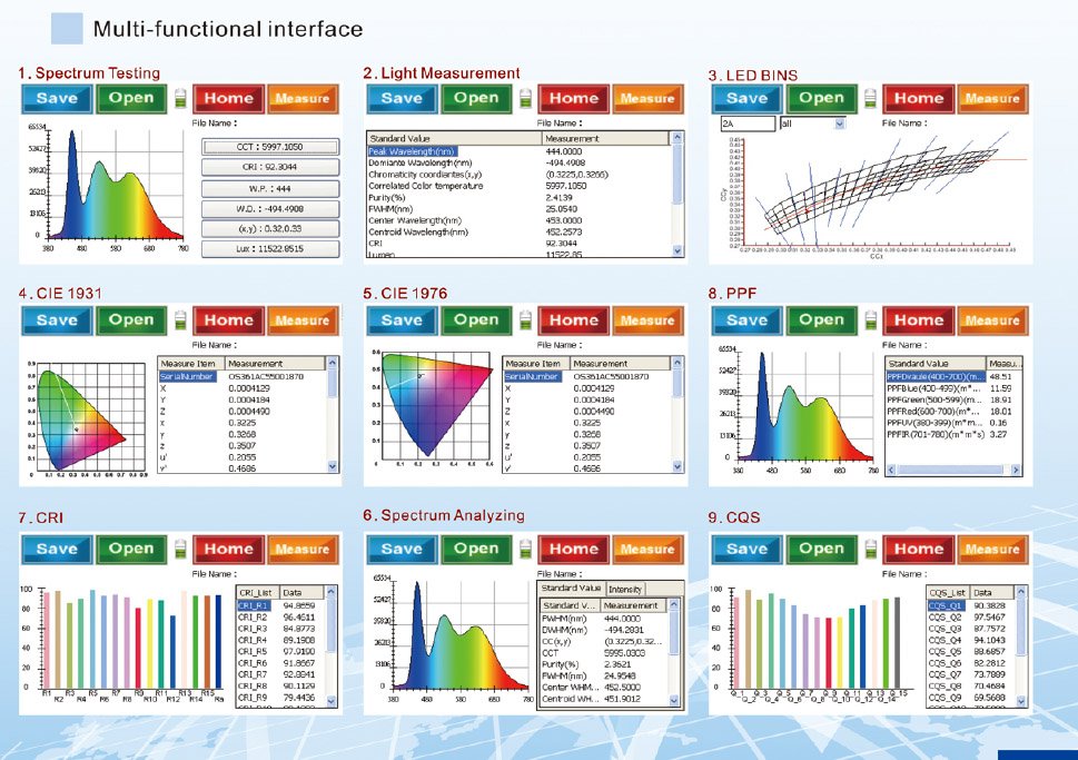 This light meter can capture and visible light source and to operate the device through touch panel instinctively, instant spectrum and data available. Several models available, such as PPF and LED BINS.