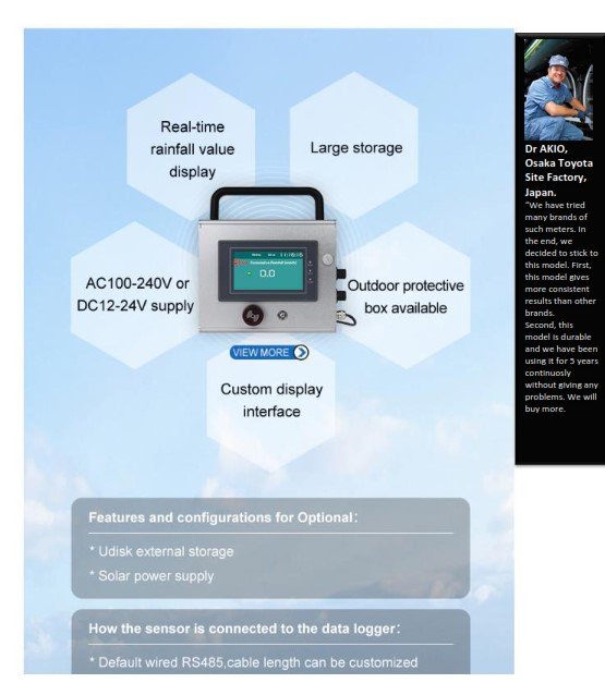 The RKA003 Automatic Rainfall Station is used to measure and record rainfall information. The LCD display can show the real time rainfall value, time & date. Large-capacity FLASH memory chips can automatically stored at least one year of meteorological data. Data logger is equipped with three types of communication interfaces (RS232 / RS485 / USB) which establish communication with the computer. Data of rainfall can be observed remotely through the supporting PC software. Meteorological weather data can be further processed and analyzed by the data logger.The station can be equipped with rainfall sensor.