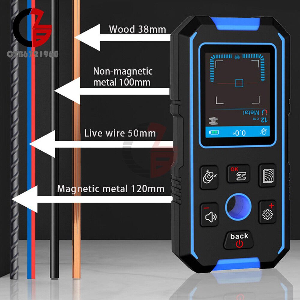 Wall detection function: Depth measurement: Wood (3.8cm) / Live (AC) wire (5cm) / Non-magnetic metal (10cm) / Magnetic metal (12cm) Metal detection: depth value is based on φ20mm standard steel Tube is for reference only (Note: depth indication error is for reference only) Function: non-metal detection/AC detection/wall/wood/live (AC) wire/magnetic metal/wall detection function Automatic shutdown: 5 minutes Working temperature: 0°C-50°C Storage temperature: -10°C-60°C
