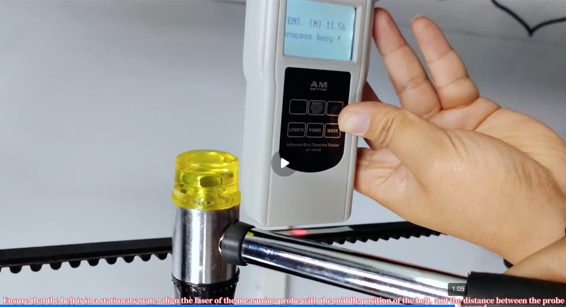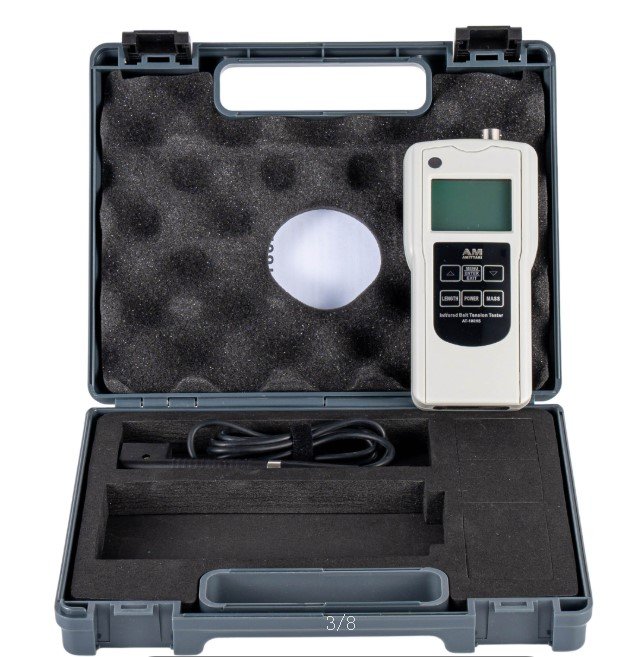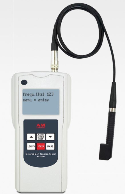 The Infrared Belt Tension Meter can measure the belt tension of motor and other machines quickly. This tensiometer can measure the natural vibration frequency of the belt through the emission and reception of the laser, and then calculate the tension value of the belt by combining the input belt mass and the free belt length.