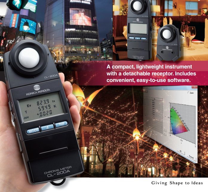 The Chroma Meter CL-200A is your go-to tool for a multitude of applications, from projector light source research and LED billboard development to light distribution evaluation and building and interior lighting research.